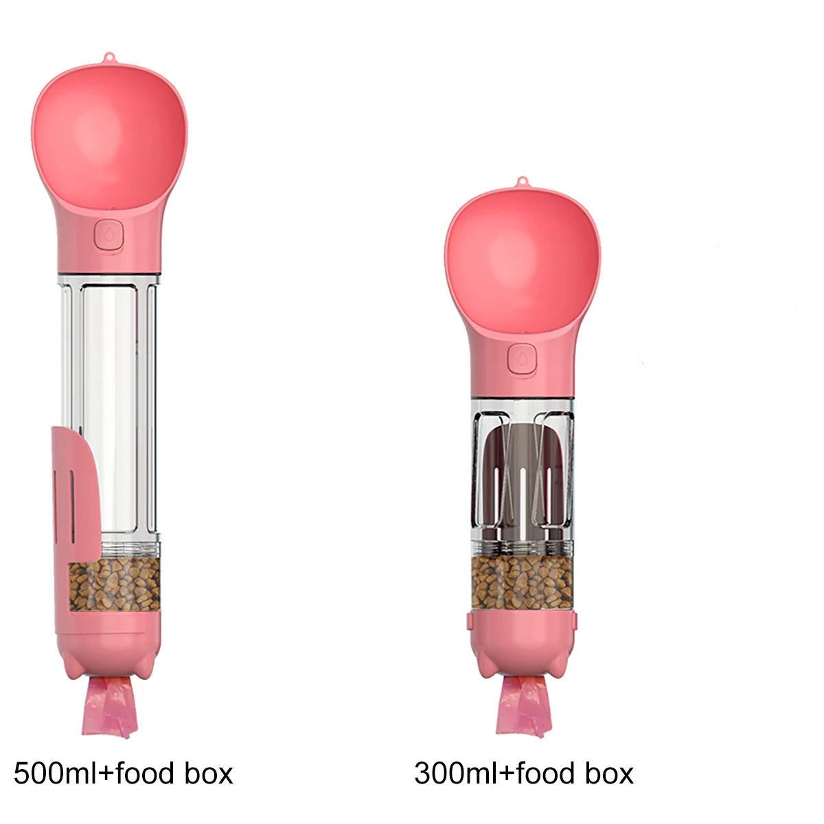 Este termo multifuncional combina 4 en 1: agua, comida, bolsas de basura y pala para desechos. Ideal para paseos, caminatas y viajes, siempre tendrás lo necesario para tu mascota en un solo producto práctico.